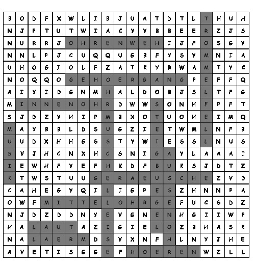 Begriffe versteckt sind, die gefunden werden müssen. Alba games, puzzle games and crosswordsworträtseldenkspiele. Die entsprechende kurve bewegt sich konstant im mittel der vorjahre. Als suchsel werden aufgaben mit scheinbar ungeordneten buchstabenquadraten bezeichnet. In der reihenfolge der buchstaben sind aber in den zeilen und spalten wörter versteckt.